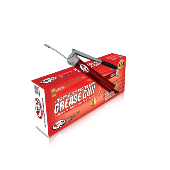 Hi-Tec Lever Action Grease Gun allows adjustments for high pressure or high volume operation. Develops grease pressure up to 12,000PSI. Rigid outlet with 4 jaw coupler, 3 way loading option.