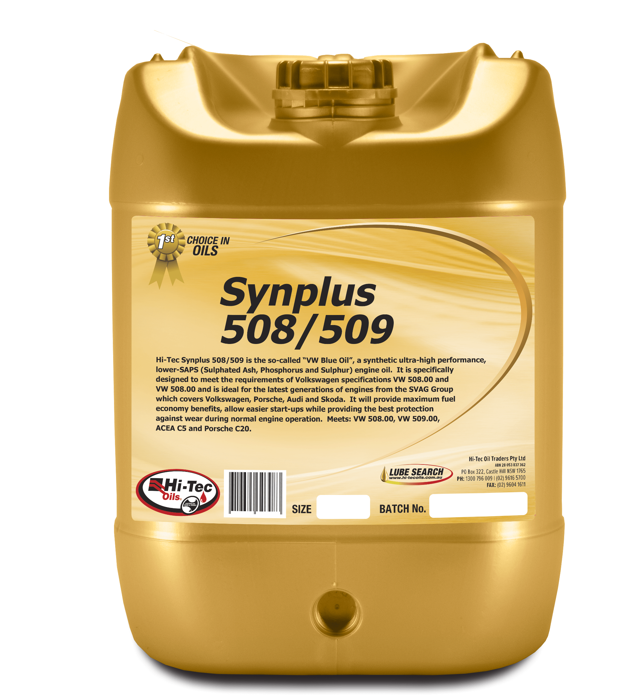 Synplus 508/509 0W/20 is an advanced full synthetic engine oil, engineered to meet Volkswagen 508.00/509.00 and Porsche C20 specifications. Designed for fuel-efficient petrol and diesel engines, this oil ensures superior wear protection and extended oil change intervals.